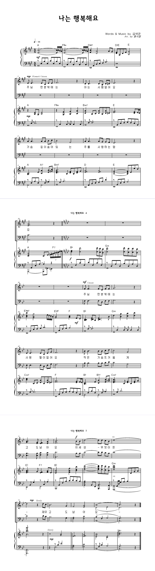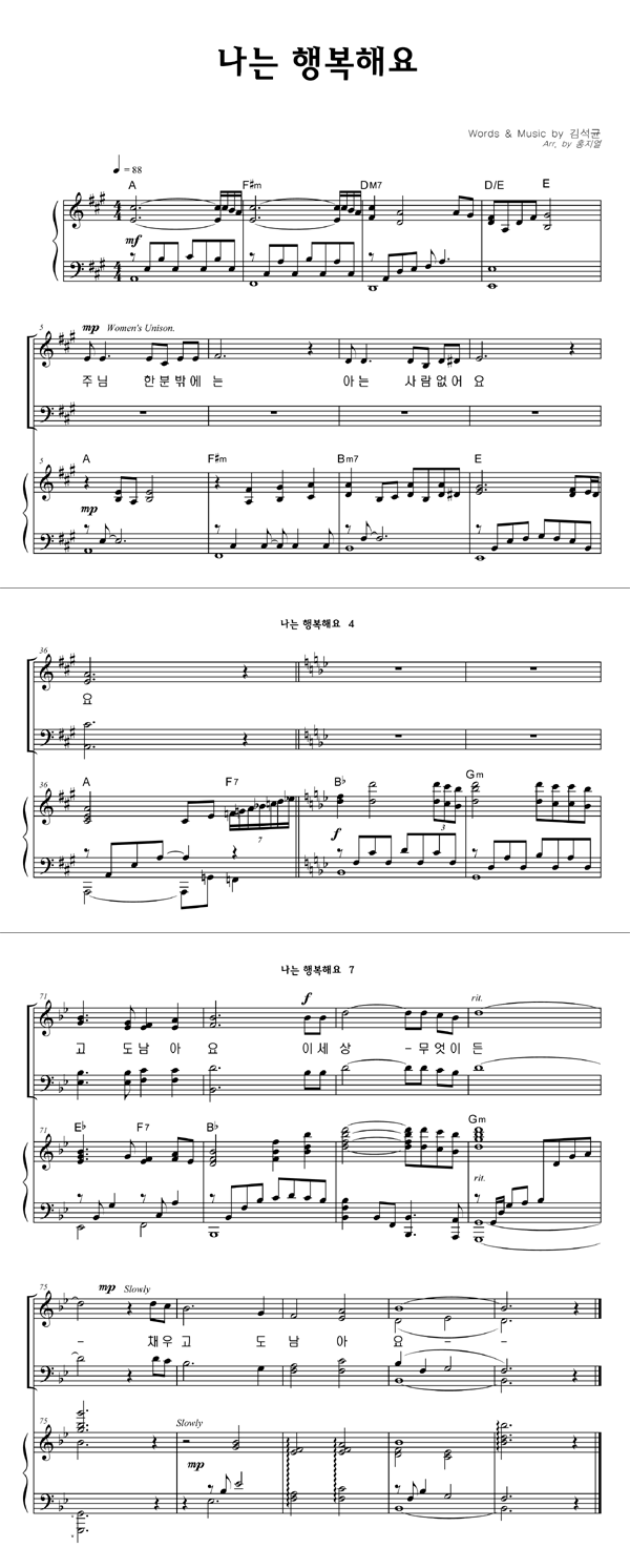 | 나는 행복해요 | 성가 4부 + 피아노 반주 |