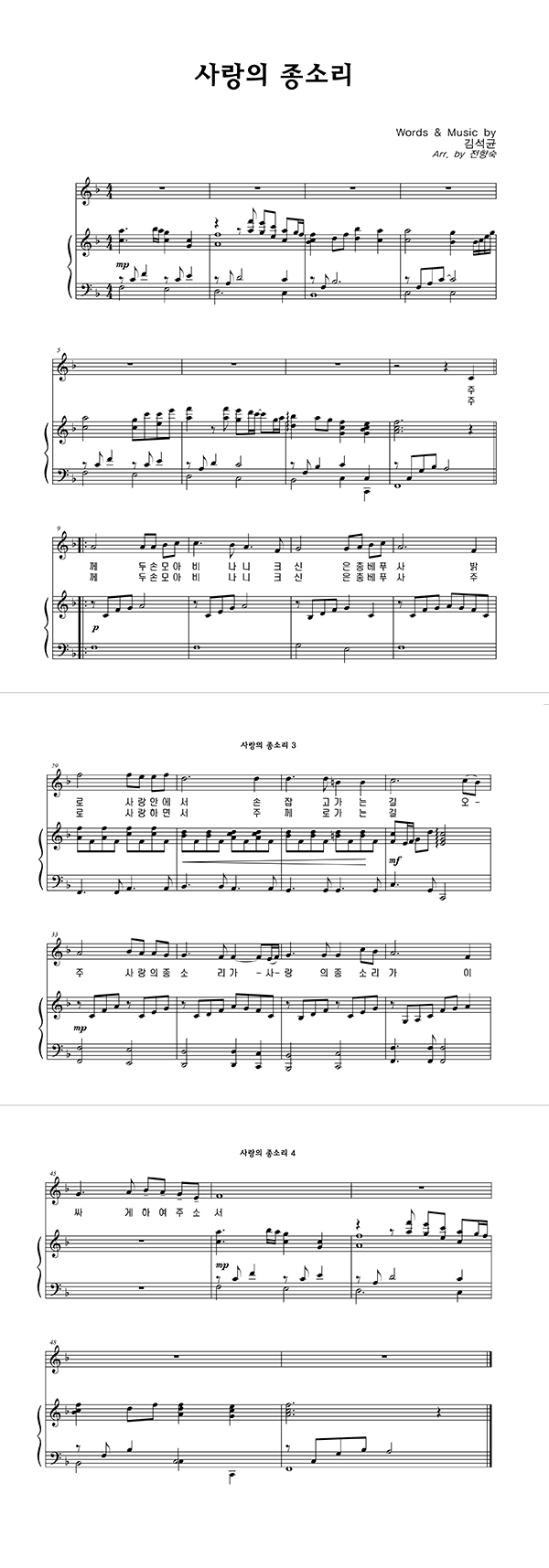 | 사랑의 종소리 | 성가 3부 + 피아노 반주 |