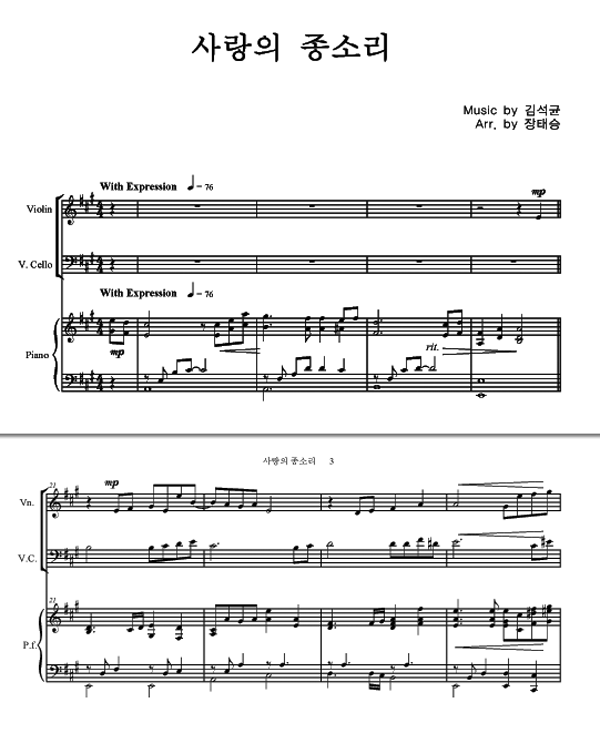 '사랑의 종소리' 의 다른 악보형식