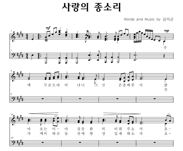 | 사랑의 종소리 | 성가 3부 + 피아노 반주 |