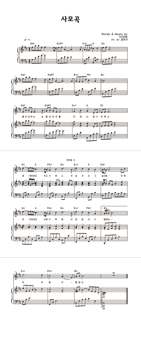 | 사모곡 | 성가 2부 + 피아노 반주 |