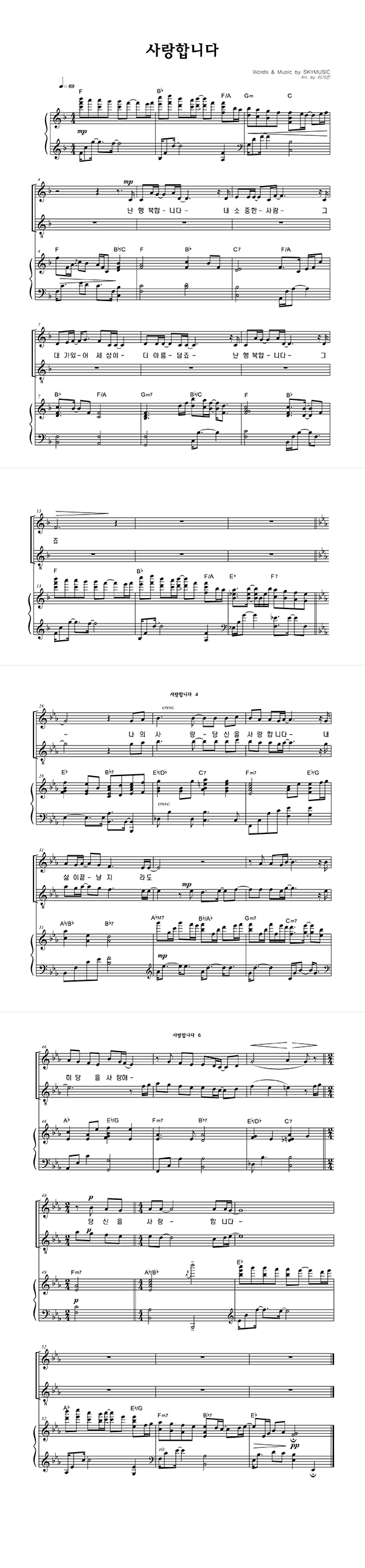 | 사랑합니다 큰글씨 | 성가 2부 + 피아노 반주 |