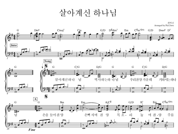'살아계신 하나님' 의 다른 악보형식