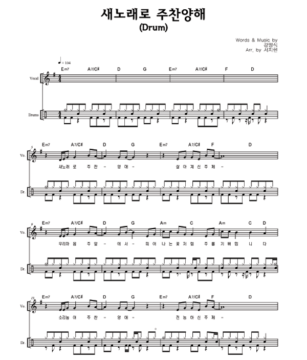 '새 노래로 주 찬양해' 의 다른 악보형식
