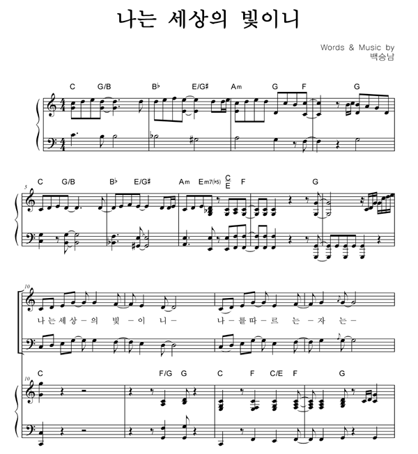 | 나는 세상의 빛이니 | 성가 4부 + 피아노 반주 |