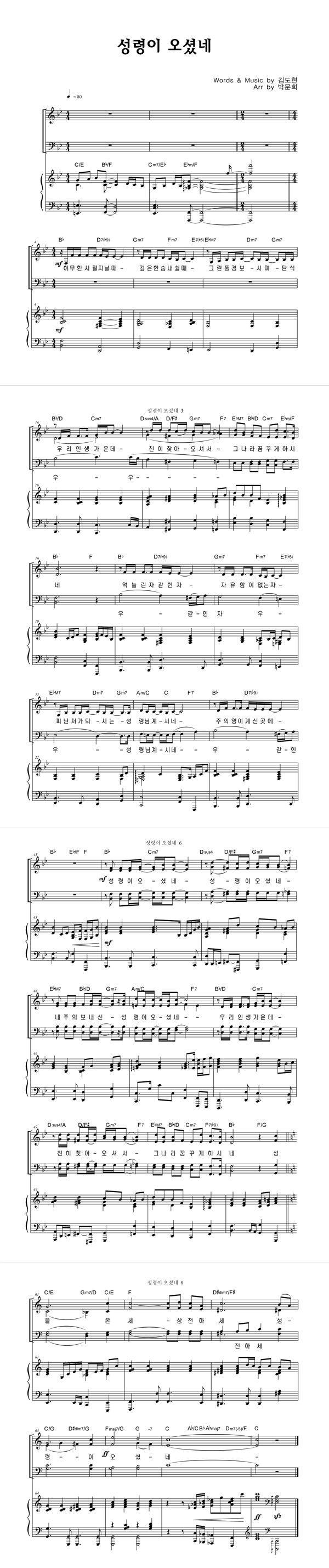 | 성령이 오셨네 | 성가 4부 + 피아노 반주 |