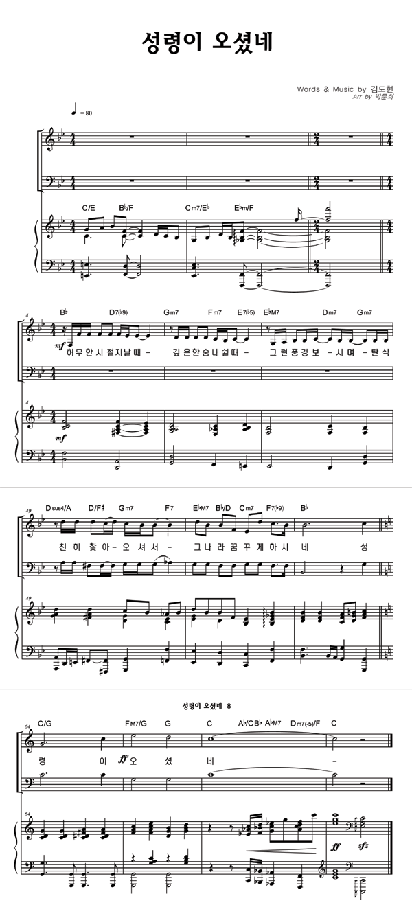 | 성령이 오셨네 | 성가 3부 + 피아노 반주 |
