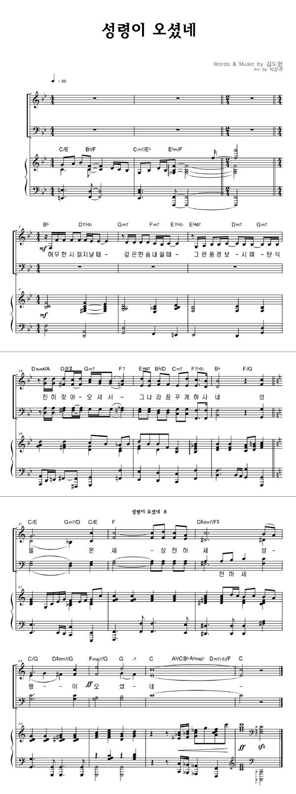 | 성령이 오셨네 | 성가 2부 + 피아노 반주 |