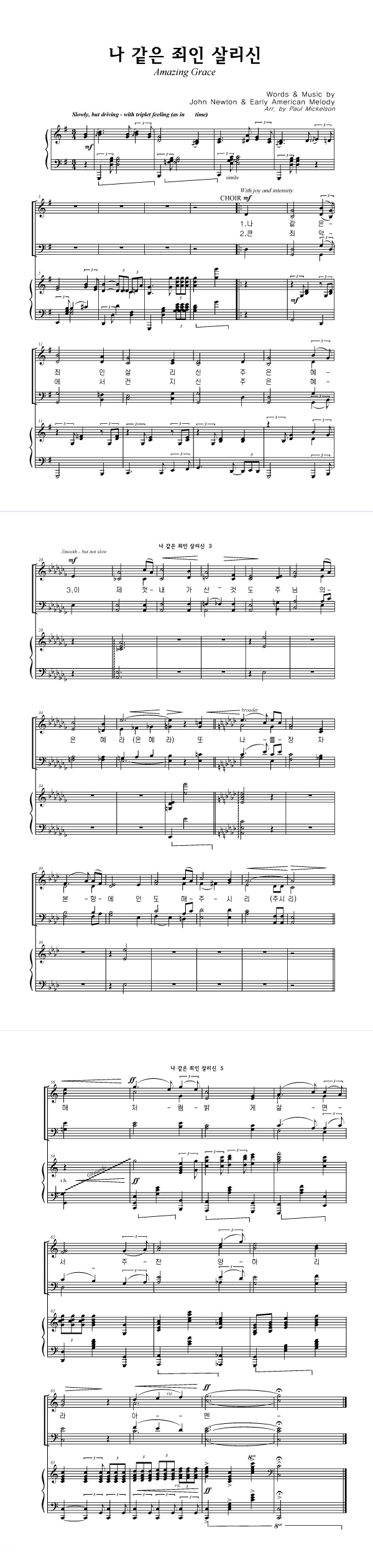 | 나 같은 죄인 살리신 (찬송가 305장) | 단선 |