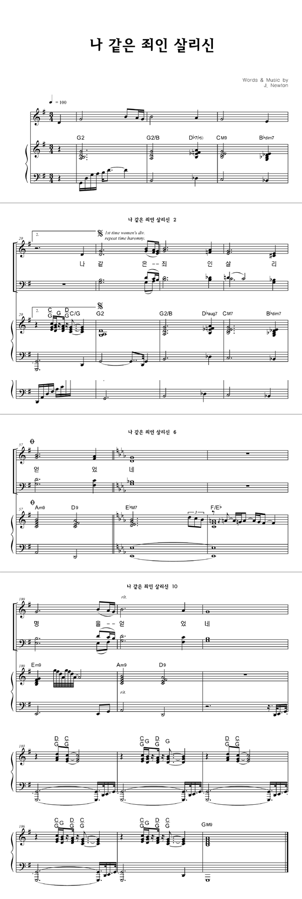 | 해 뜨는데 부터 | 성가 2부 + 피아노 반주 |