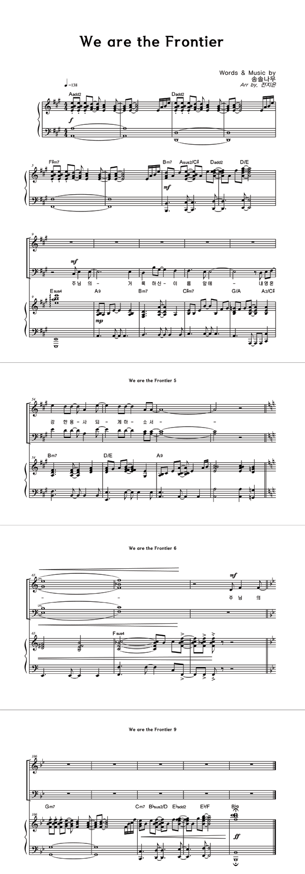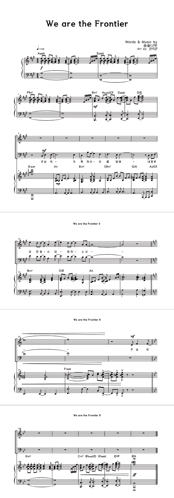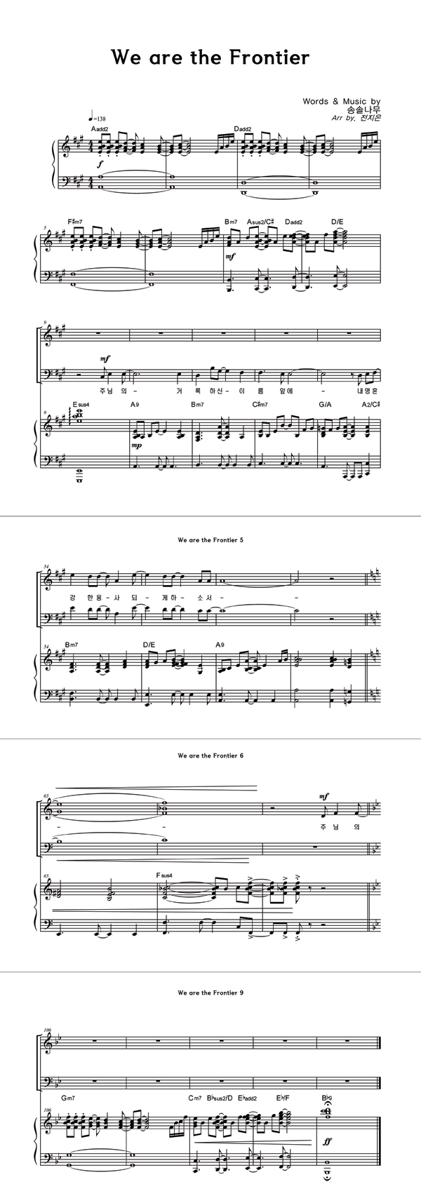 | We are the frontier | 성가 3부 + 피아노 반주 |