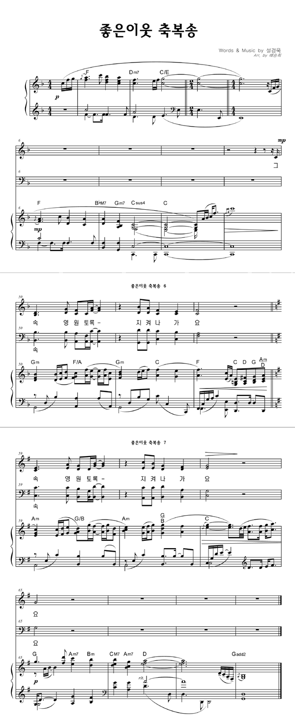 | 축복송 | 성가 4부 + 피아노 반주 |