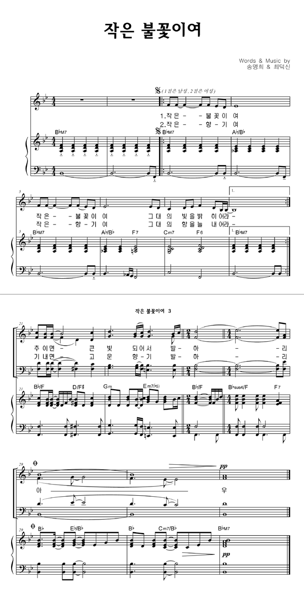 | 작은 불꽃이여 | 성가 4부 + 피아노 반주 |