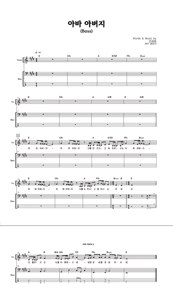 | 아바 아버지 | 성가 2부 + 피아노 반주 |