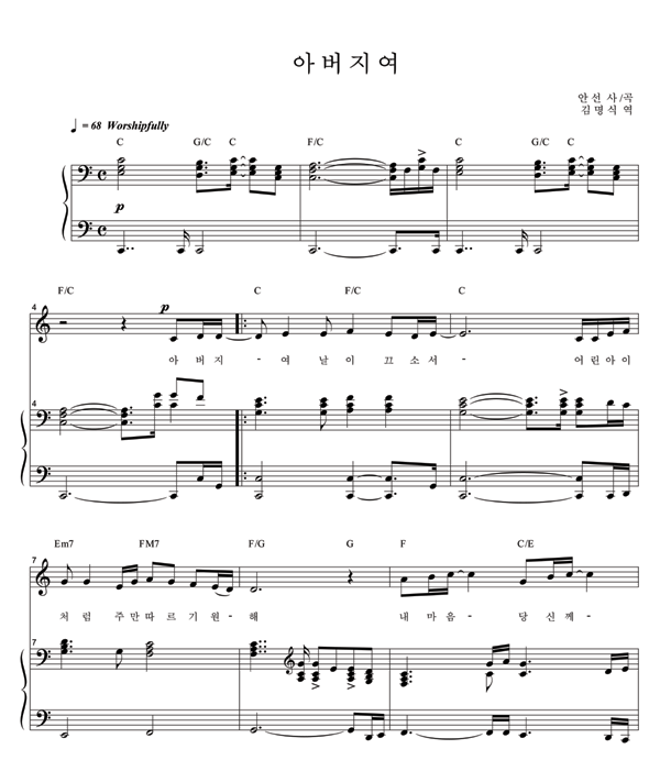 | 아버지여 | 성가 2부 + 피아노 반주 |