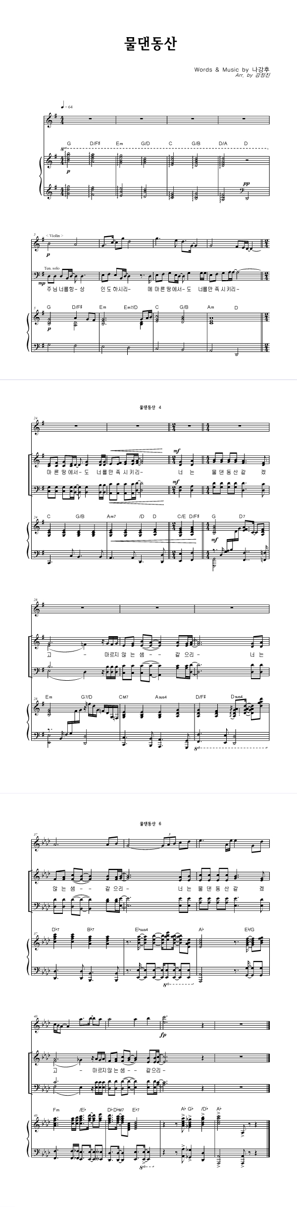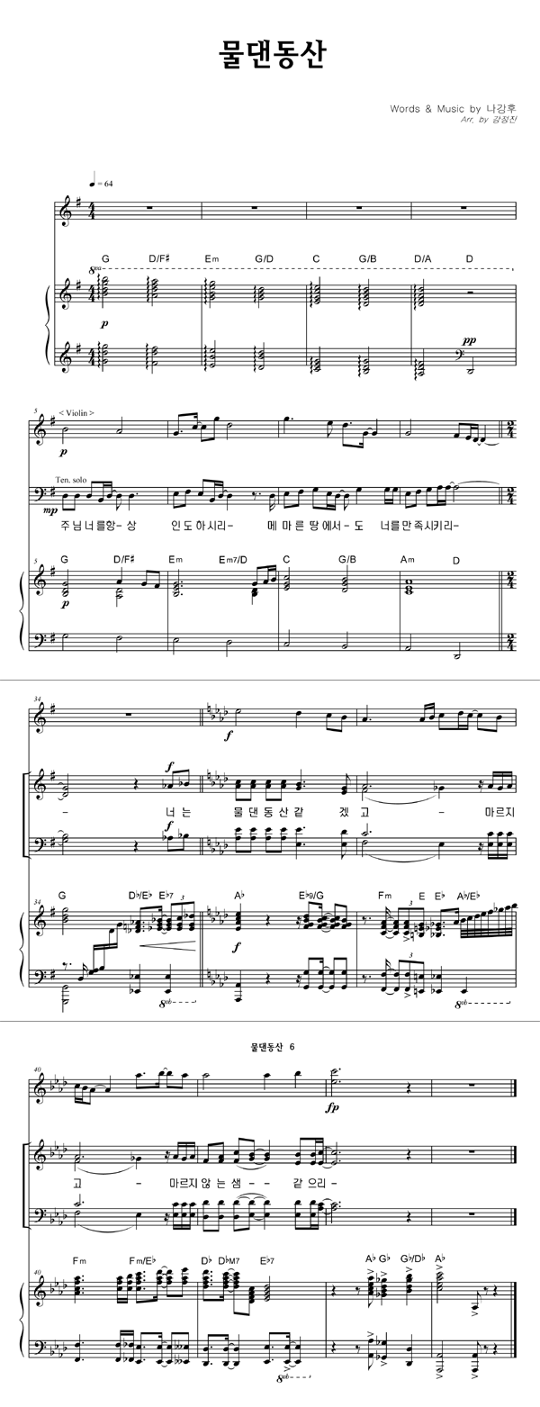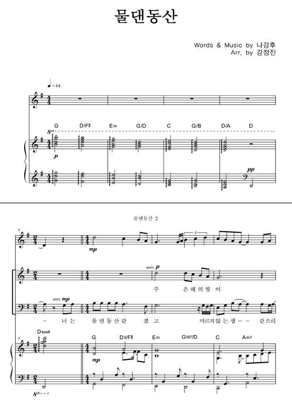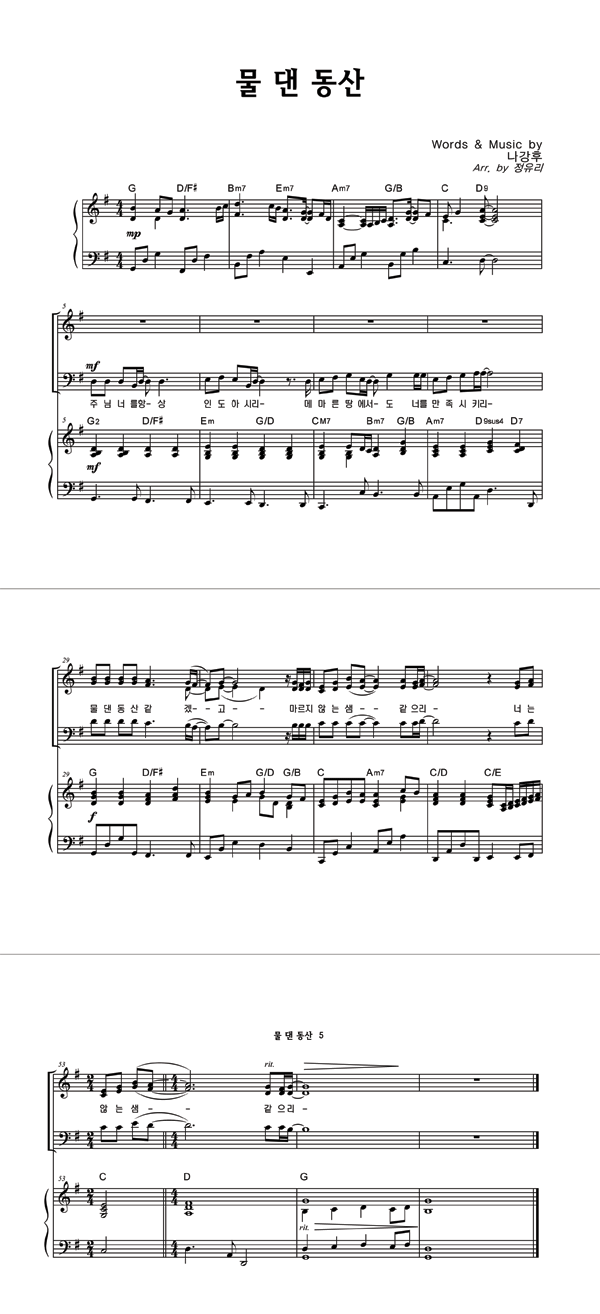 | 물댄 동산 | 성가 3부 + 피아노 반주 |