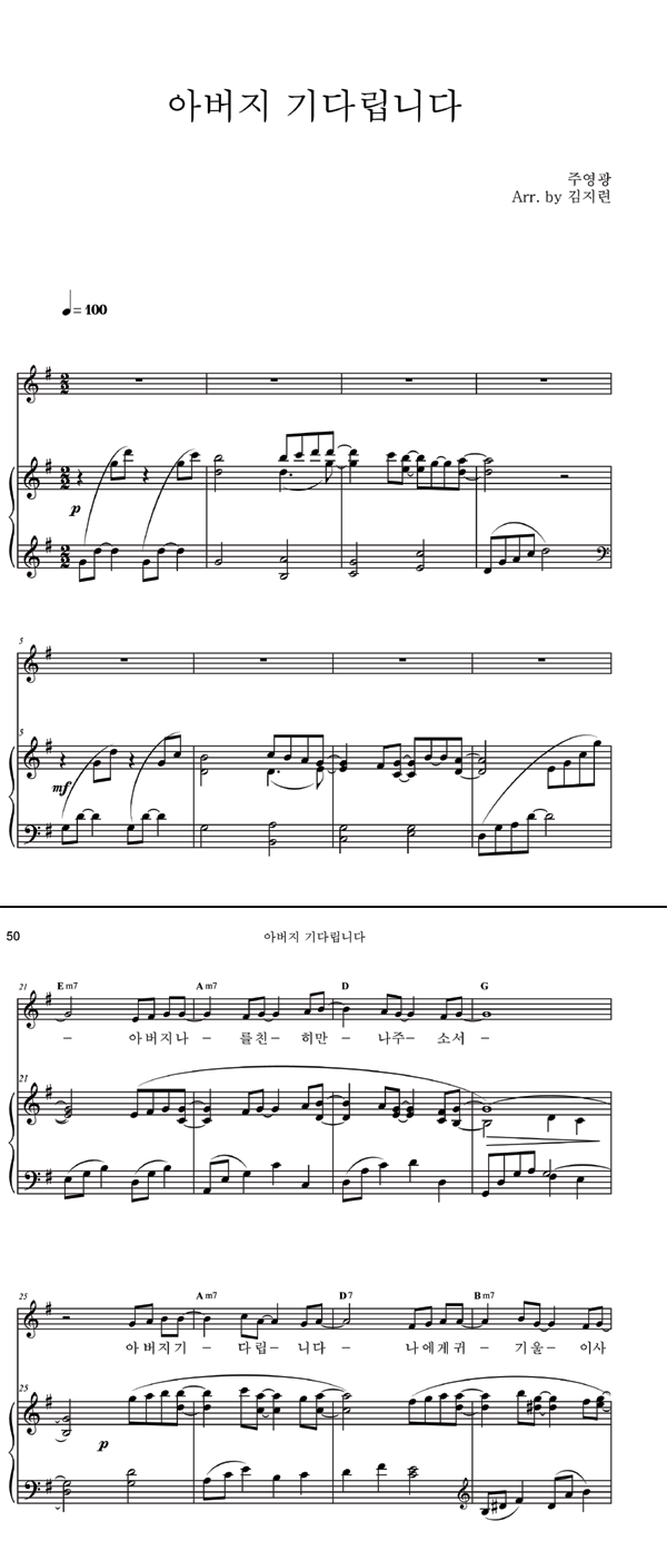 | 지금은 엘리야 때 처럼 | 성가 2부 + 피아노 반주 |