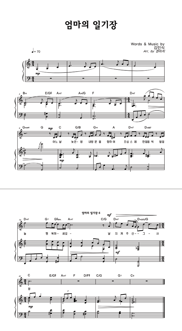 '엄마의 일기장' 의 다른 악보형식