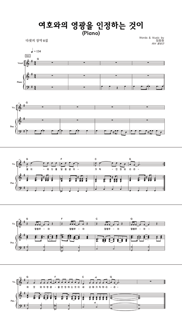 | 그는 여호와 창조의 하나님 | 성가 4부 + 피아노 반주 |