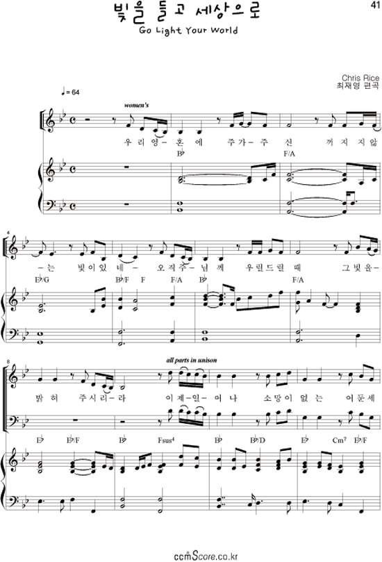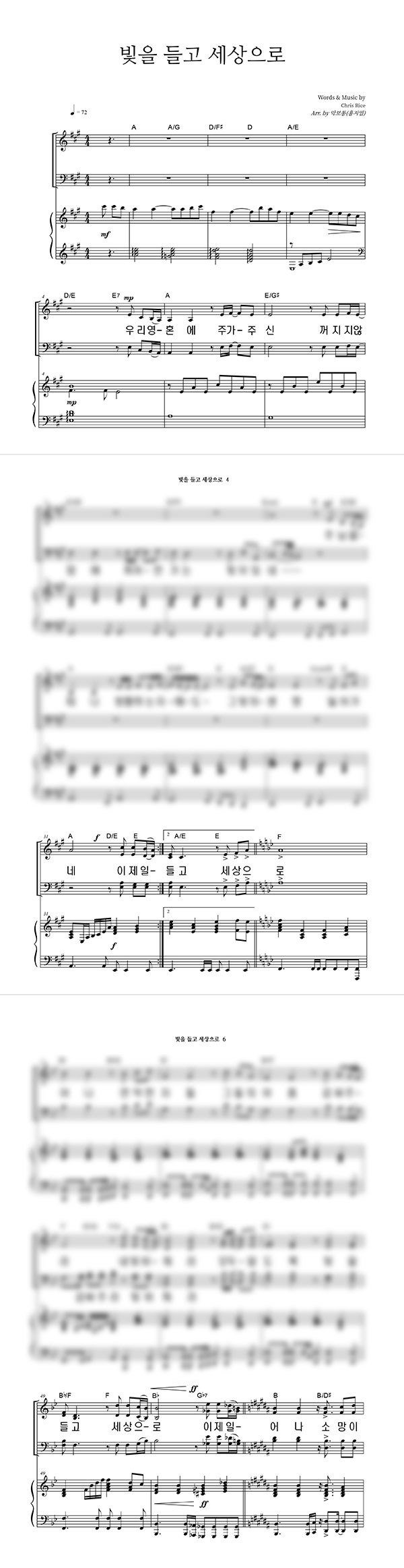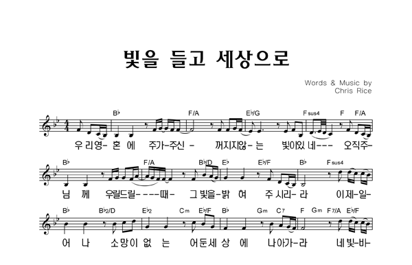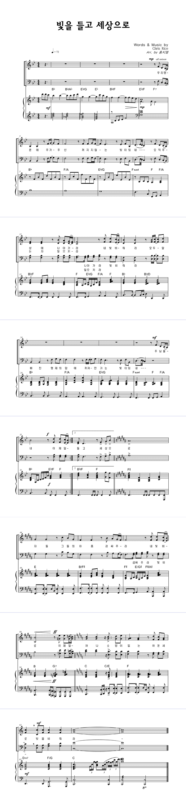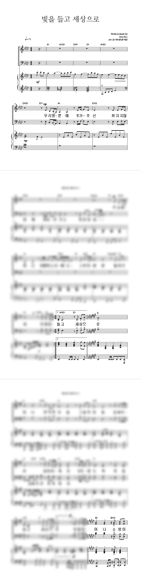 | 빛을 들고 세상으로 | 성가 3부 + 피아노 반주 |