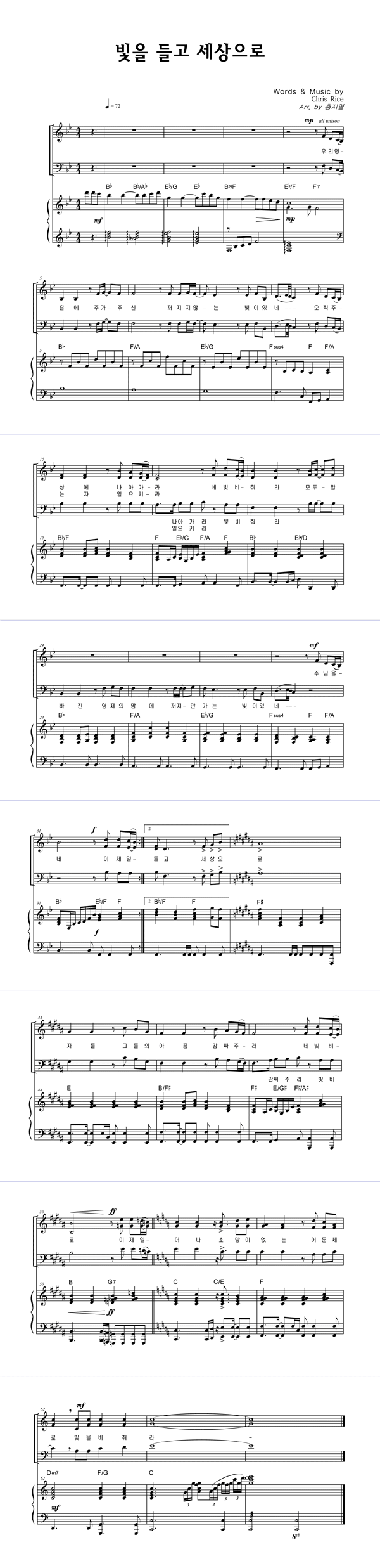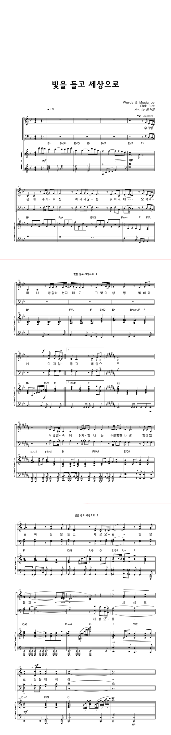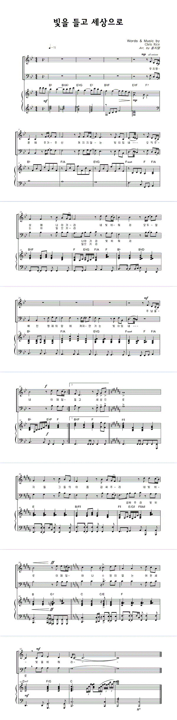 | 빛을 들고 세상으로 | 성가 2부 + 피아노 반주 |