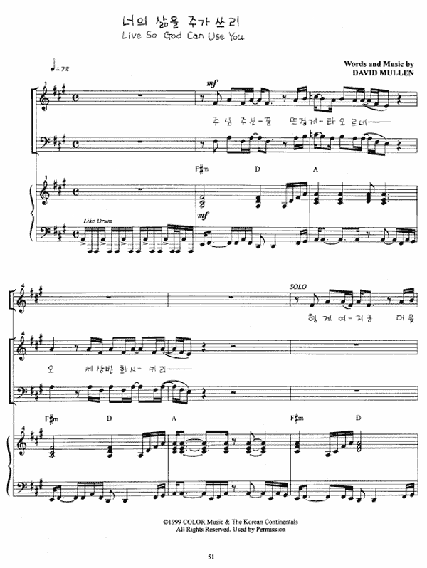 | 너의 삶을 주가 쓰리 | 성가 4부 + 피아노 반주 |