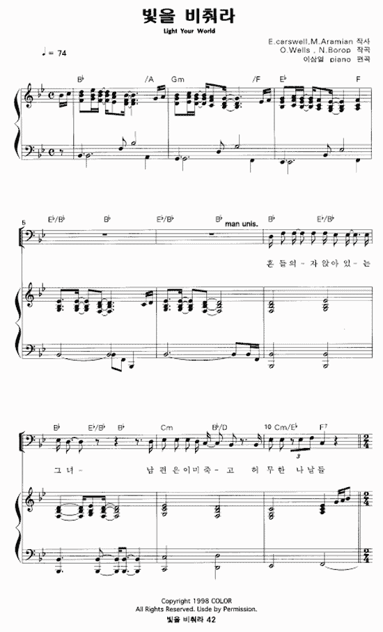 | 빛을 비춰라 | 성가 4부 + 피아노 반주 |
