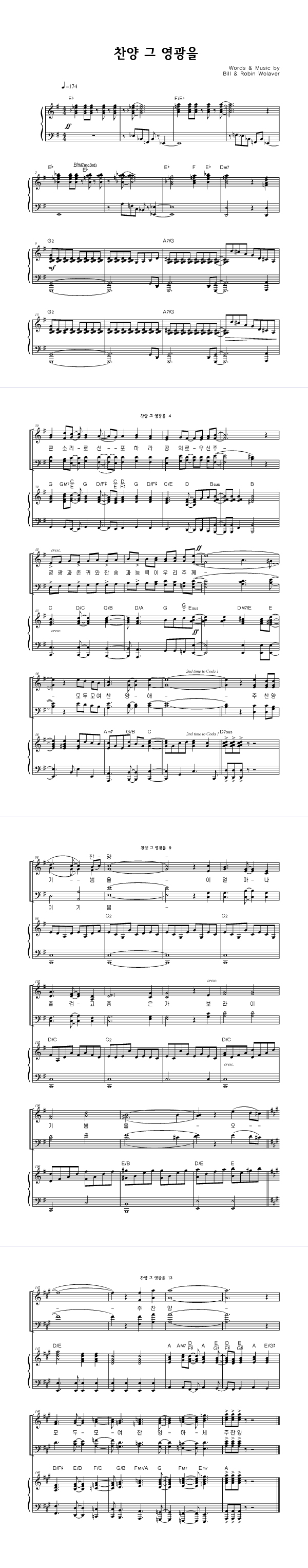 | 찬양 그 영광을 | 성가 4부 + 피아노 반주 |