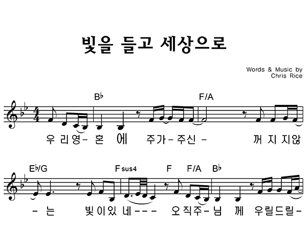 | 빛을 들고 세상으로 | 성가 4부 + 피아노 반주 |