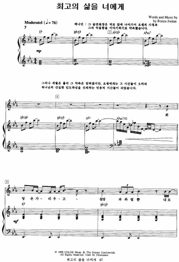 | 최고의 삶을 너에게 | 성가 4부 + 피아노 반주 |
