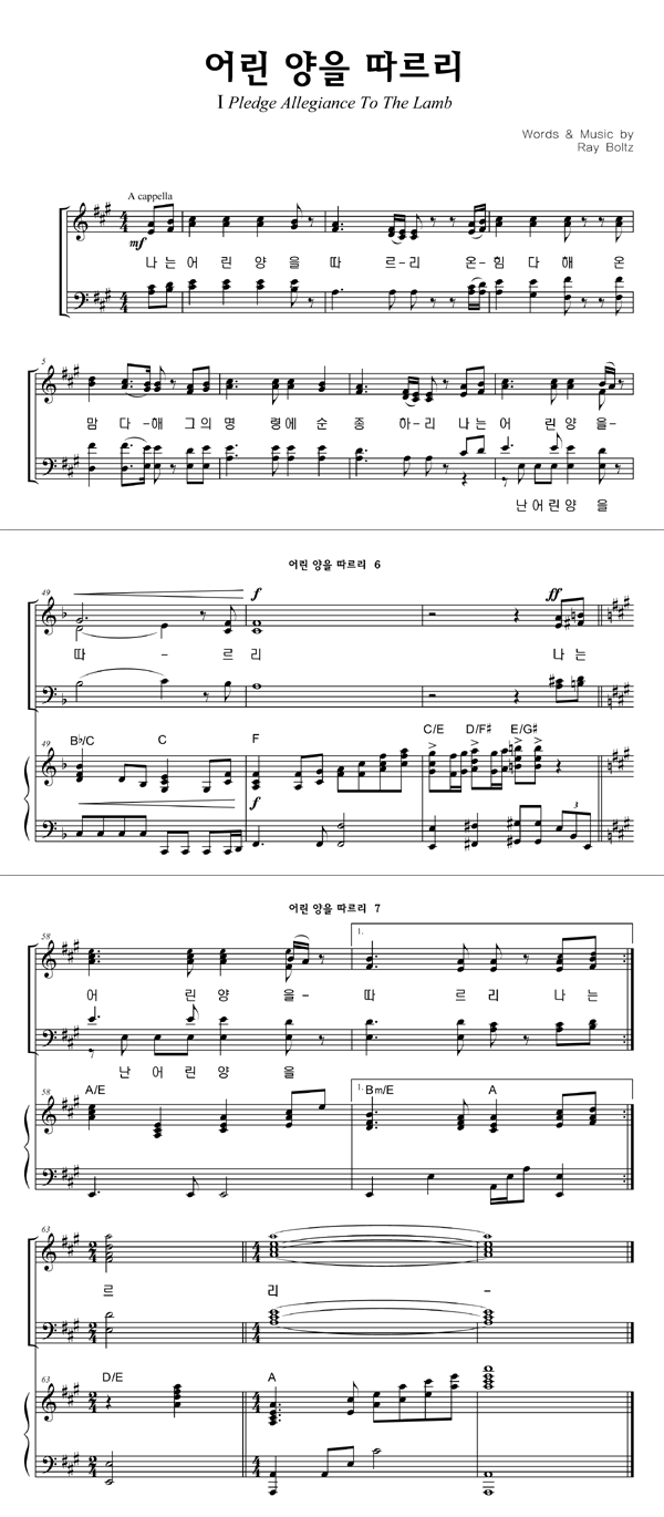 | 어린양을 따르리 | 성가 4부 + 피아노 반주 |