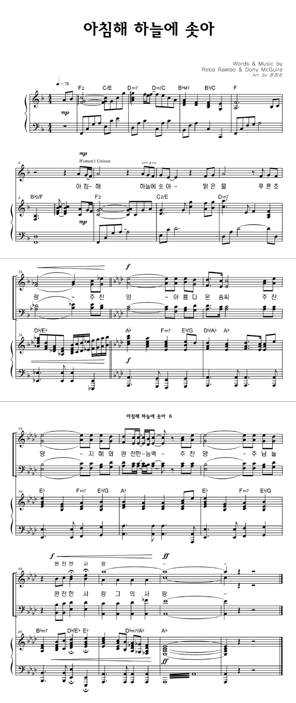 | 아침해 하늘에 솟아 | 성가 2부 + 피아노 반주 |