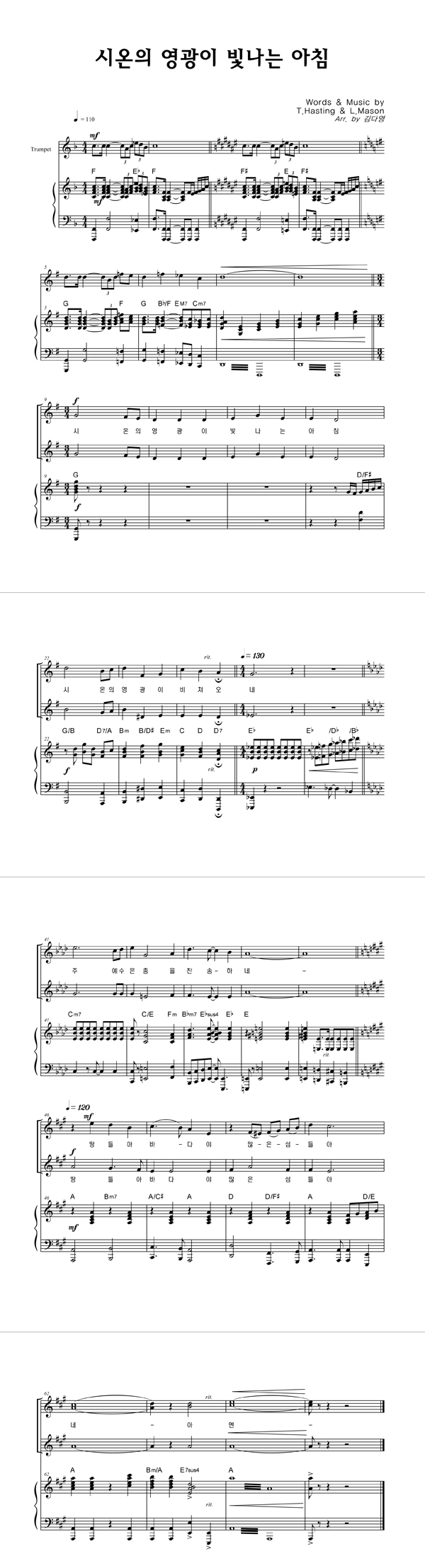 | 시온의 영광이 빛나는 아침 | 성가 2부 + 피아노 반주 |