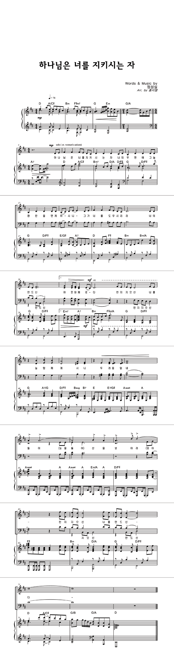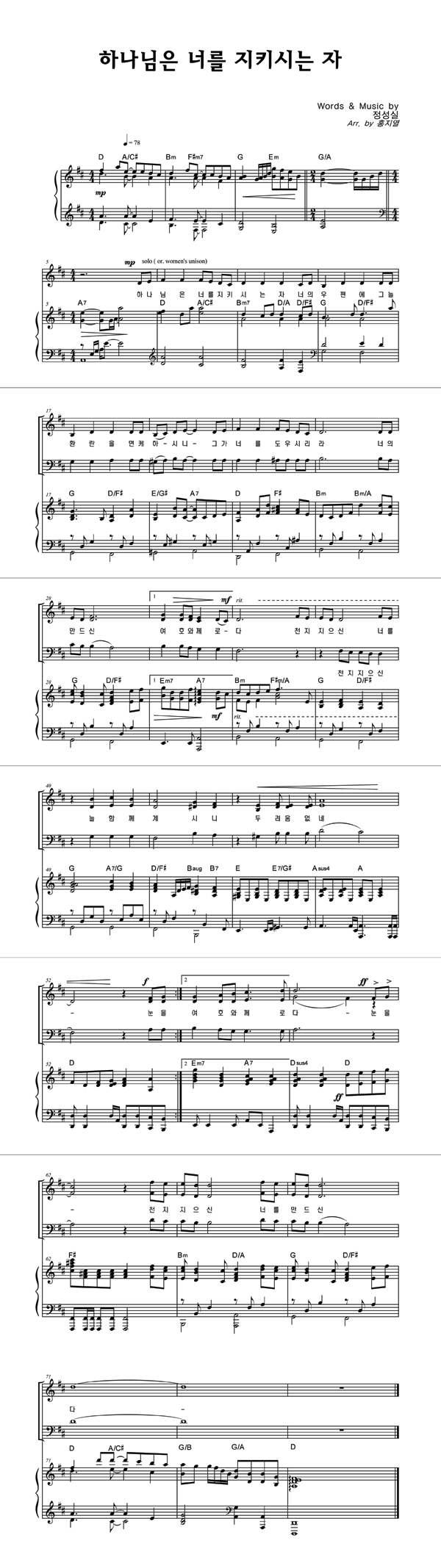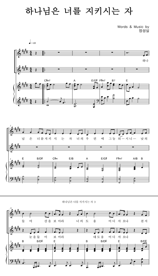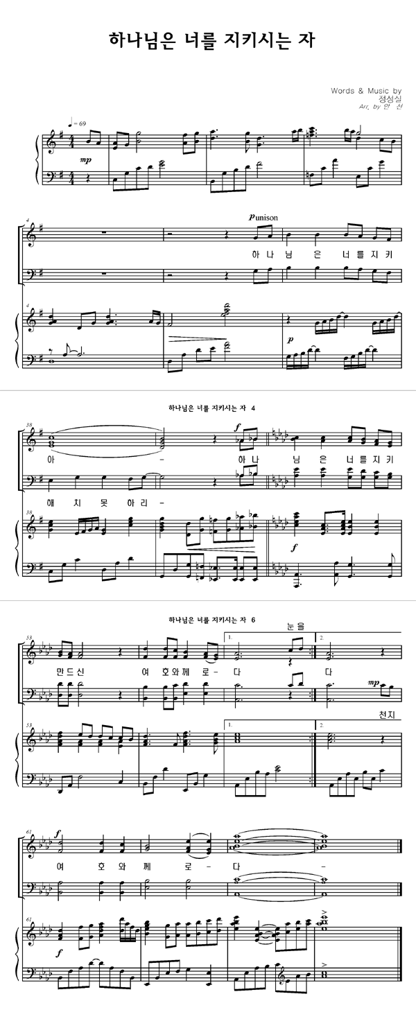 | 하나님은 너를 지키시는 자 | 성가 2부 + 피아노 반주 |