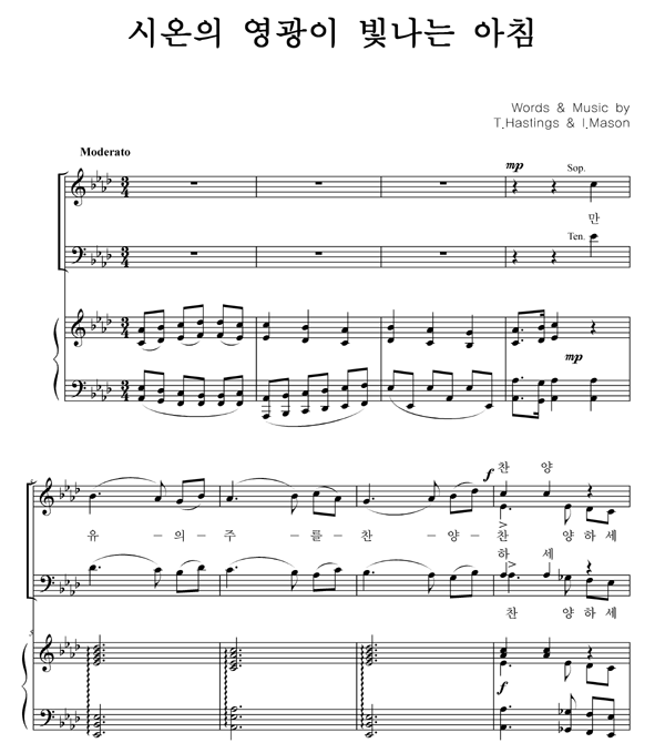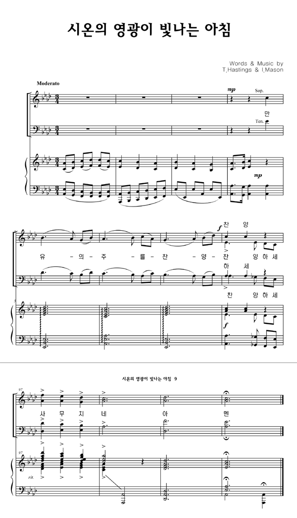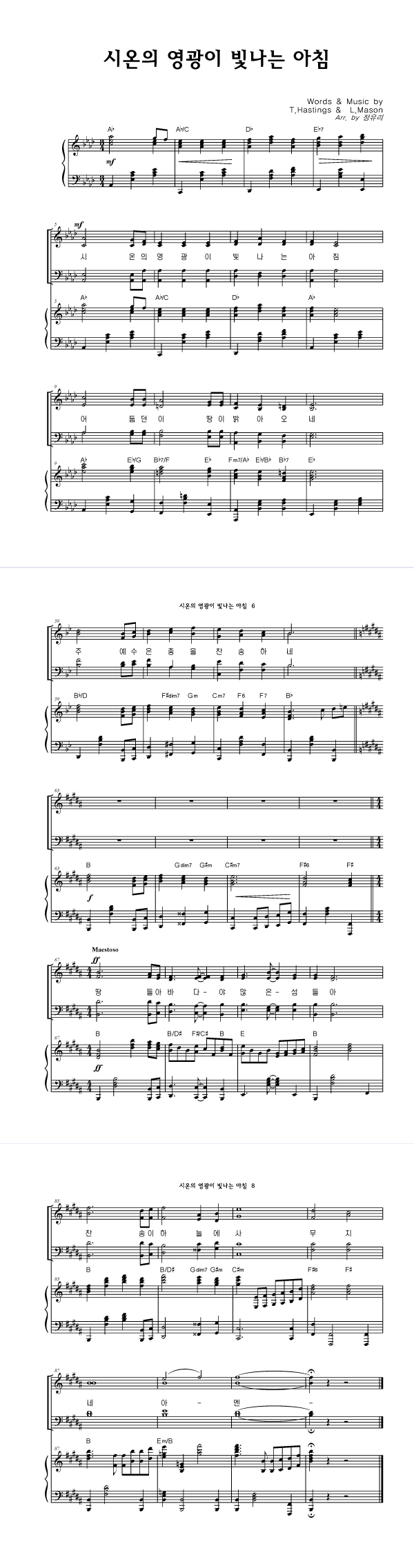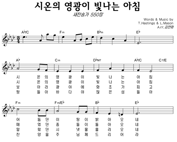| 시온의 영광이 빛나는 아침 | 성가 4부 + 피아노 반주 |