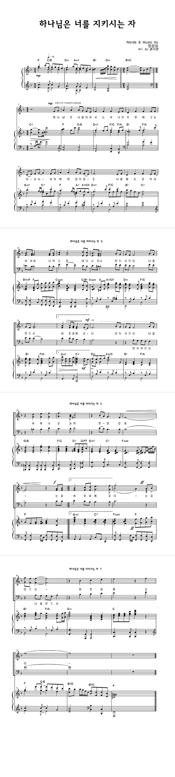 | 하나님은 너를 지키시는 자 | 성가 3부 + 피아노 반주 |