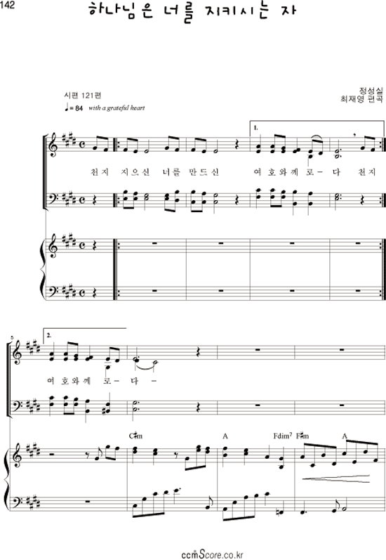 | 하나님은 너를 지키시는 자 | 성가 4부 + 피아노 반주 |