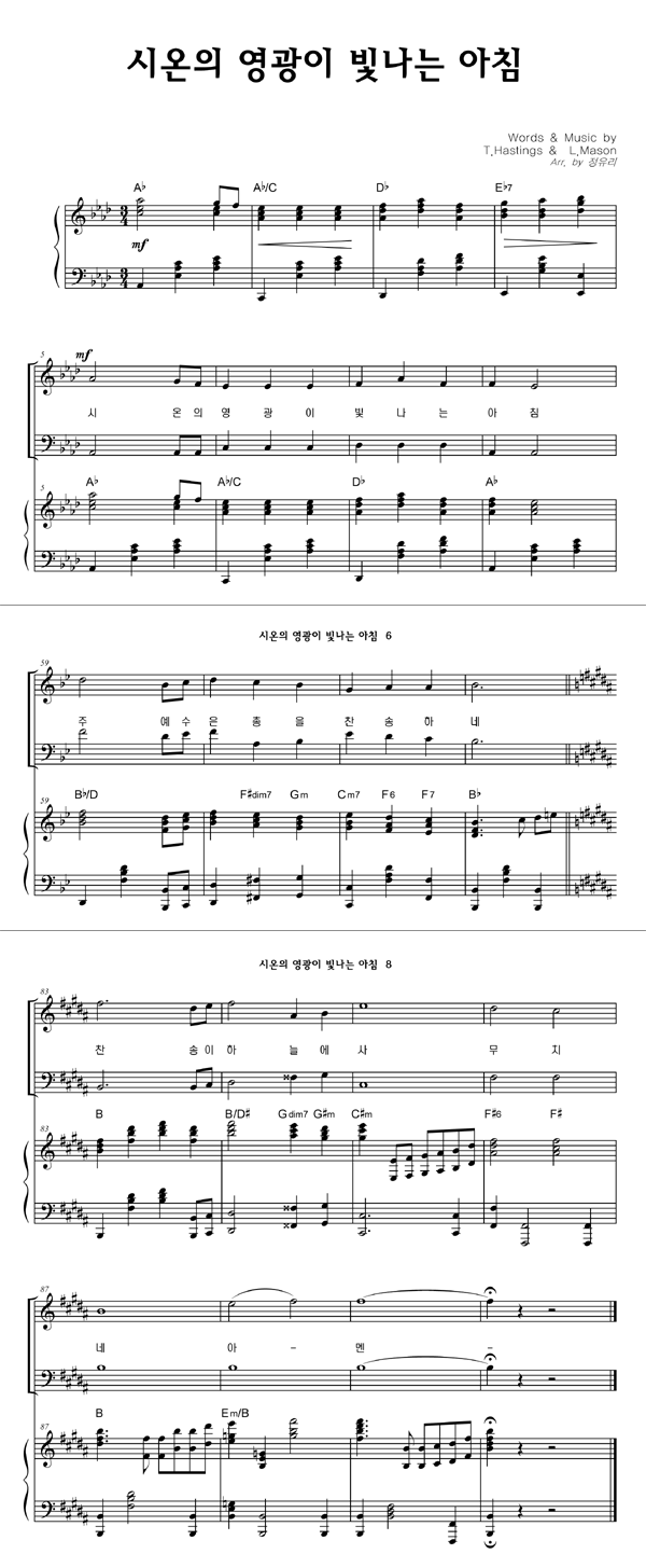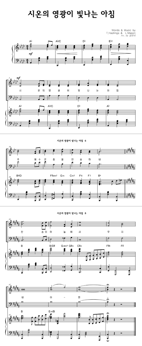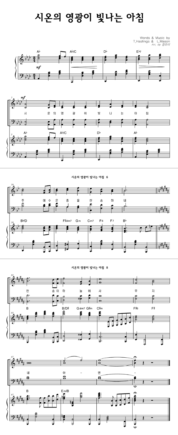 | 시온의 영광이 빛나는 아침 | 성가 3부 + 피아노 반주 |
