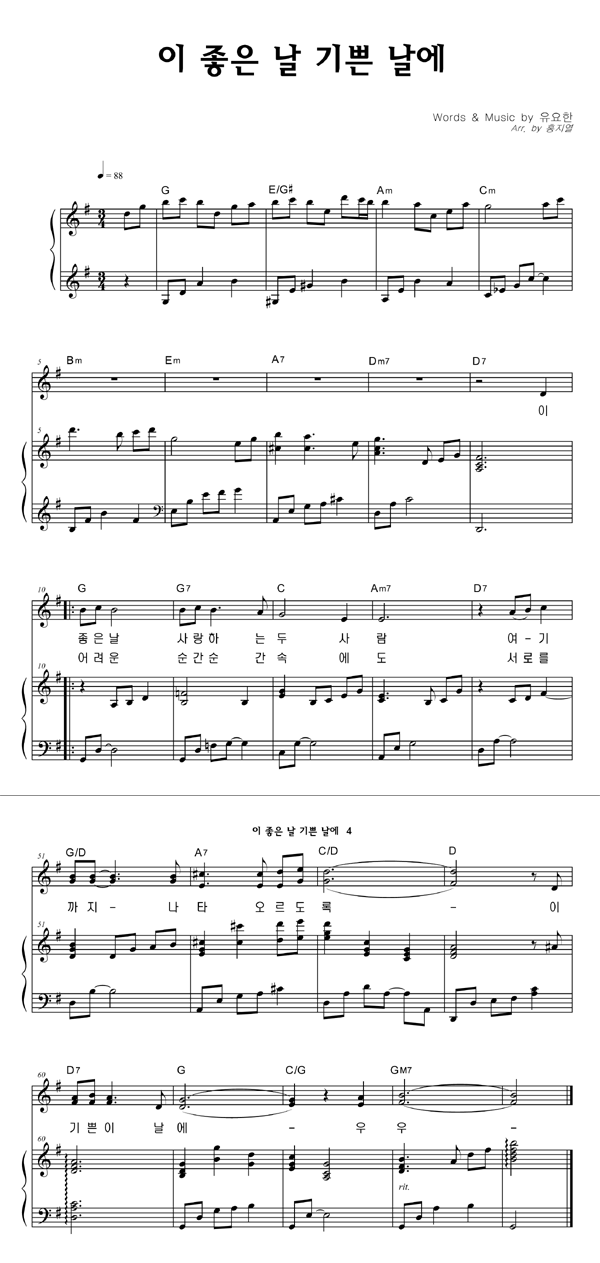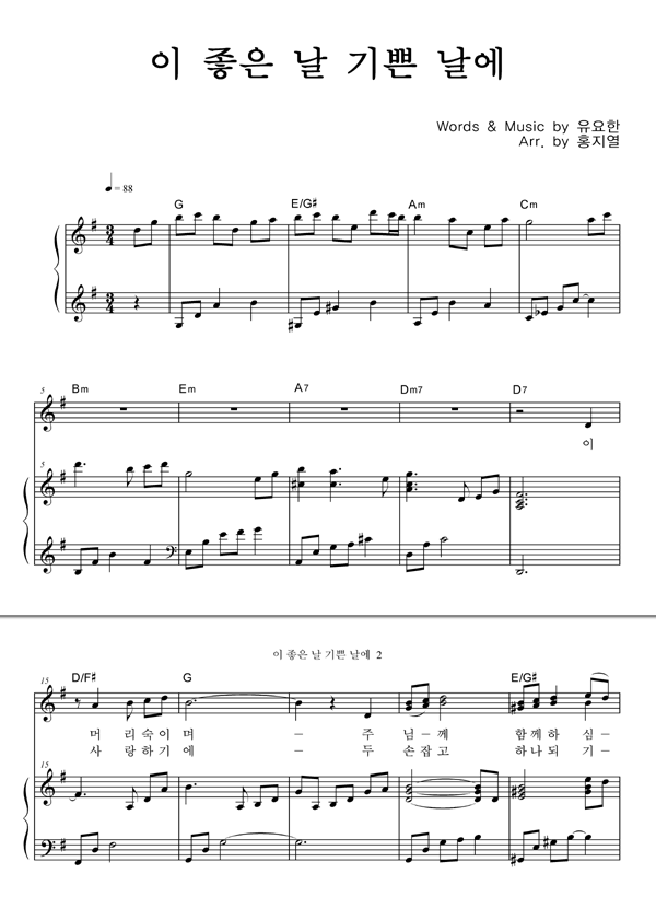 | 이 좋은 날 기쁜 날에 | 성가 2부 + 피아노 반주 |