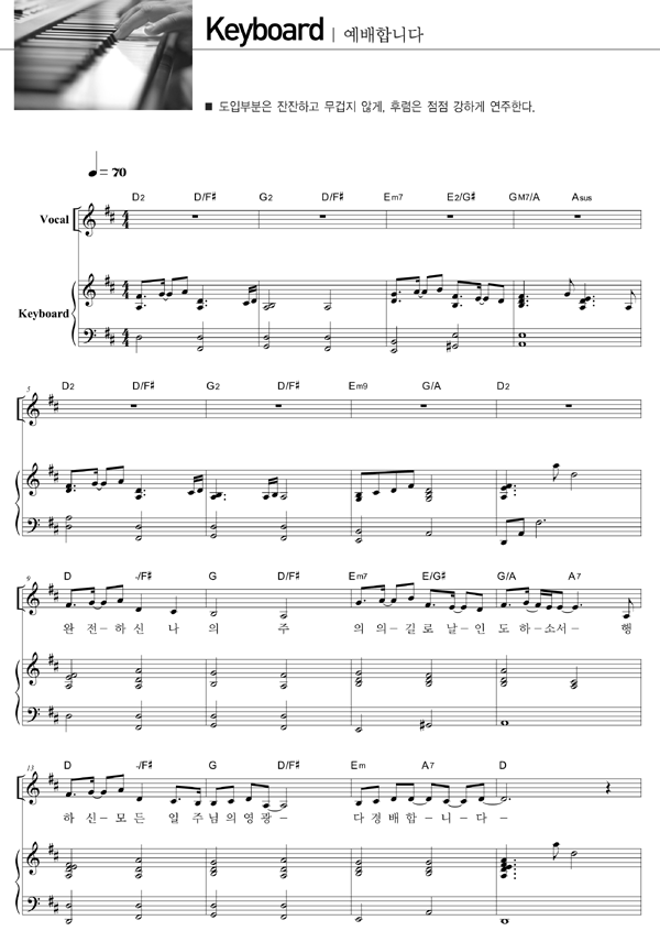 | 예배합니다 | 성가 3부 + 피아노 반주 |