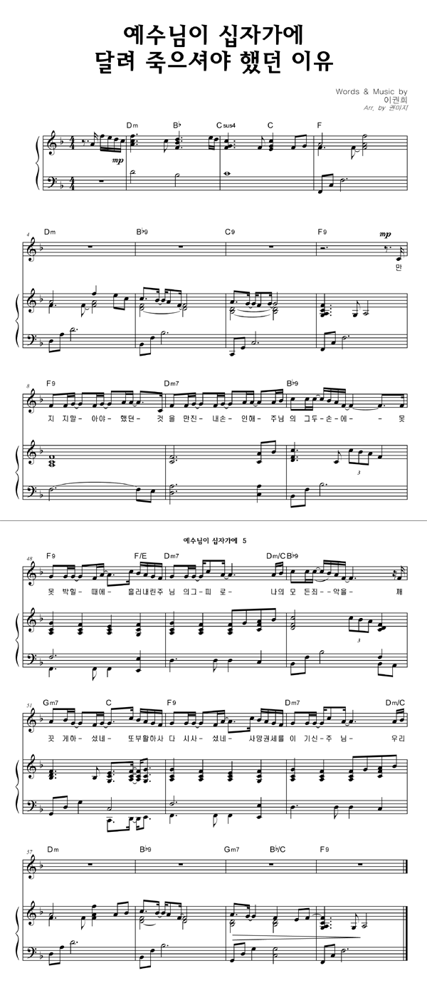 '예수님이 십자가에 달려 죽으셔야 했던 이유' 의 다른 악보형식