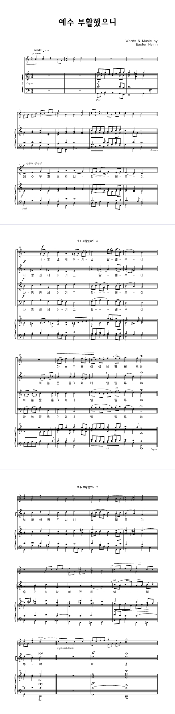 | 예수 부활했으니 | 성가 4부 + 피아노 반주 |