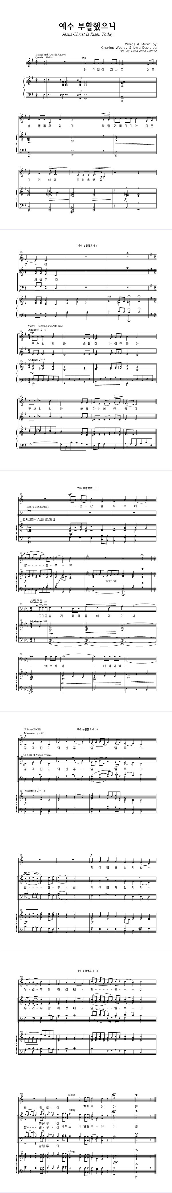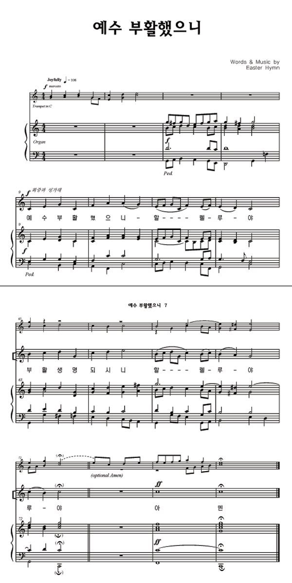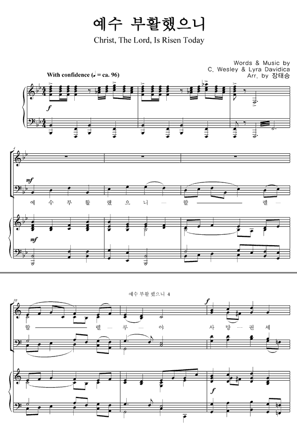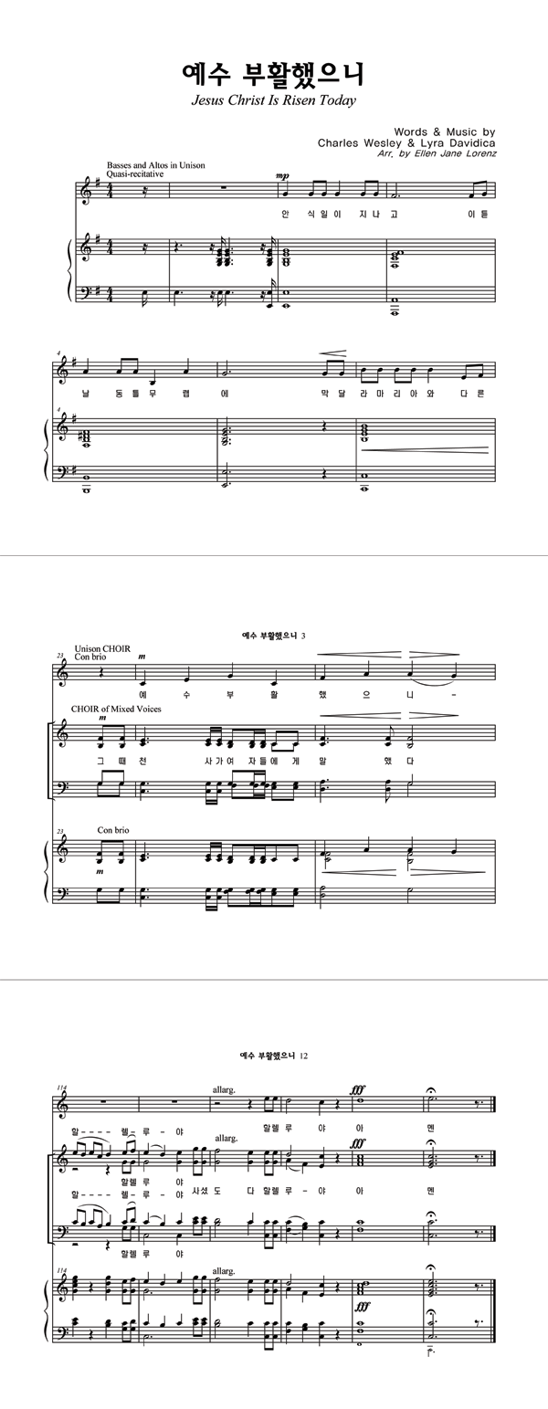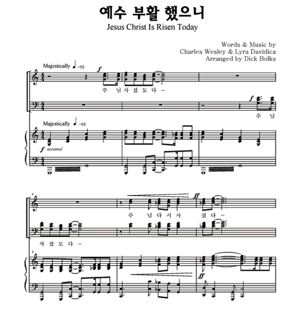 | 예수 부활했으니 / 주 다시 사셨도다 | 성가 4부 + 피아노 반주 |