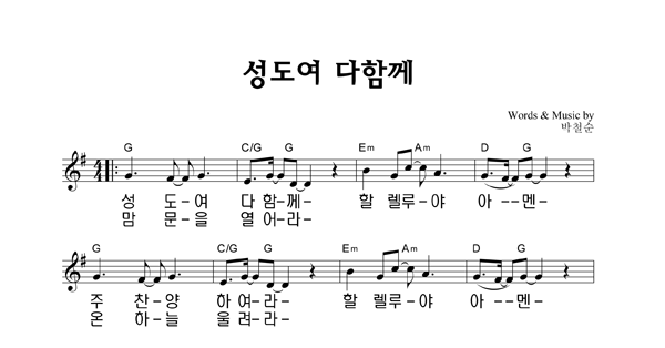 | 다 찬양하여라 | 성가 2부 + 피아노 반주 |