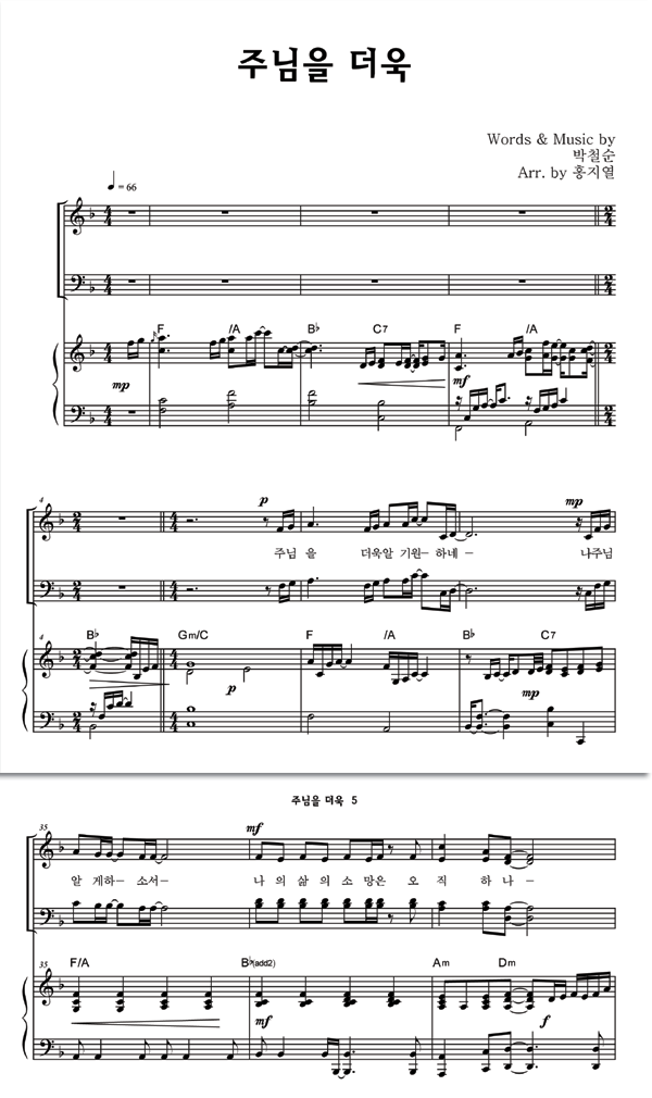 | 주님을 더욱 | 성가 4부 + 피아노 반주 |