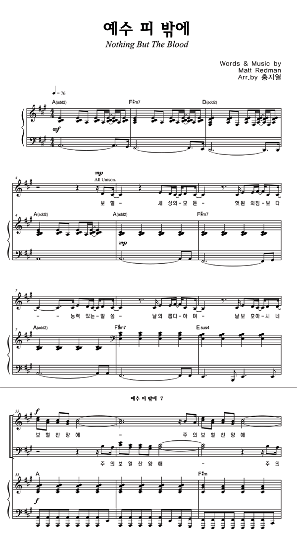 | 예수 피 밖에 | 성가 3부 + 피아노 반주 |