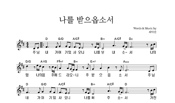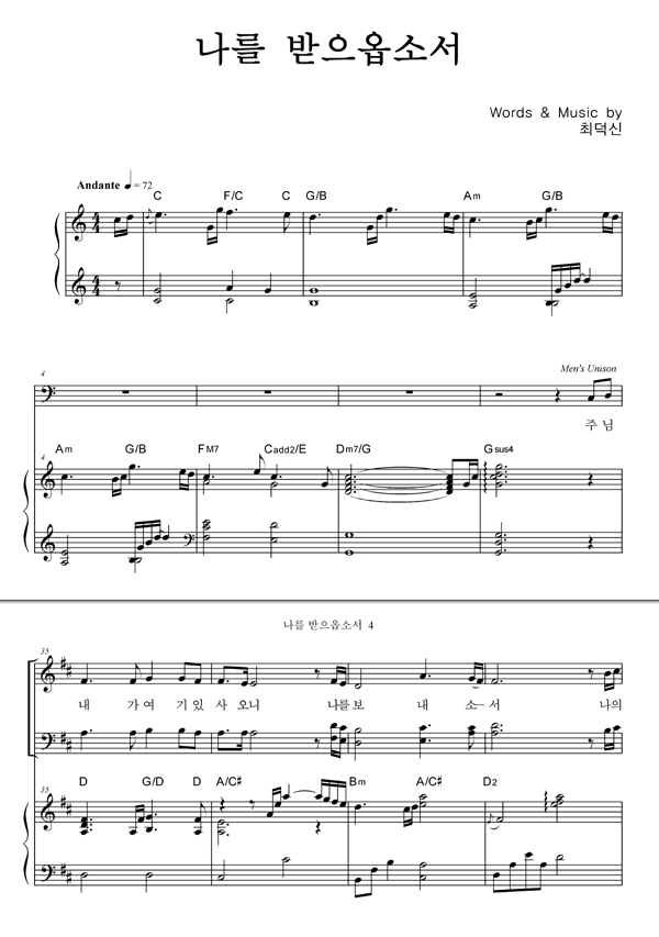 | 나를 받으옵소서 | 성가 2부 + 피아노 반주 |