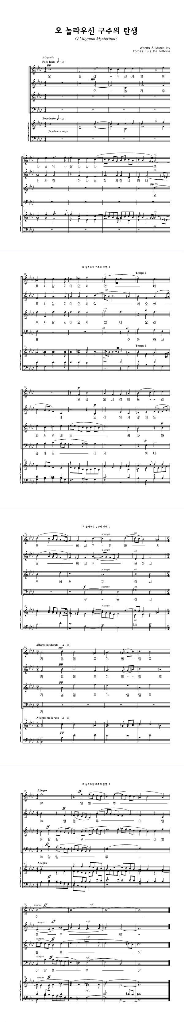 '오 놀라우신 구주의 탄생' 의 다른 악보형식