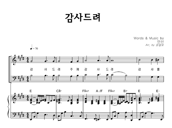 | 감사 드려 큰글씨 | 성가 4부 + 피아노 반주 |