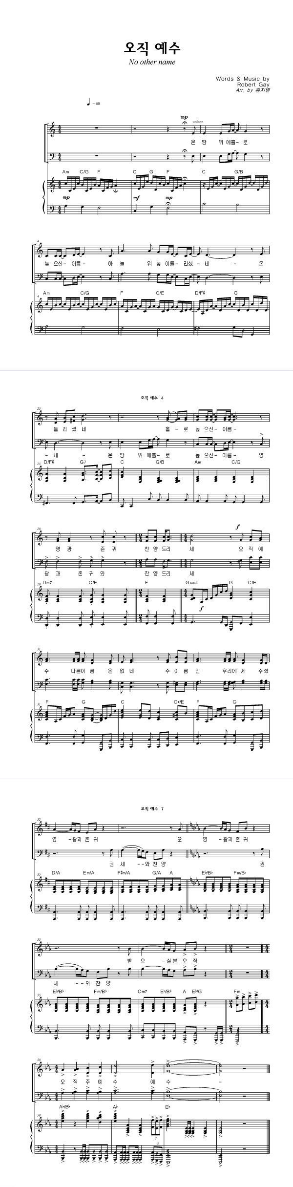 | 오직 예수 다른 이름은 없네 | 성가 3부 + 피아노 반주 |